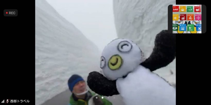 雪の大谷オンラインツアーからデビューした、西部トラベルキャラクターの『ふらり』