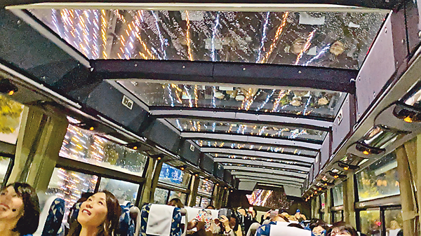 アピアショッピングセンター18:00受付~~アピアで夕食~~19:00バス発===グラストップバスでめぐる♪富山夜景&星空バス(環水公園(下車)~新湊大橋(下車)~富山城~ホワイトイルミネーション)」===アピアショッピングセンター21:00着