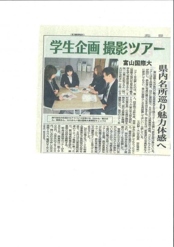 北日本新聞 2011年4月26日・5月15日 富山国際大学生企画ツアー
