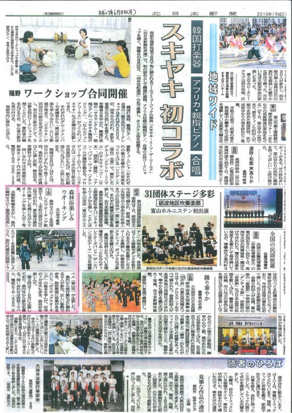 北日本新聞 2015年6月8日 森林浴ウォーキング