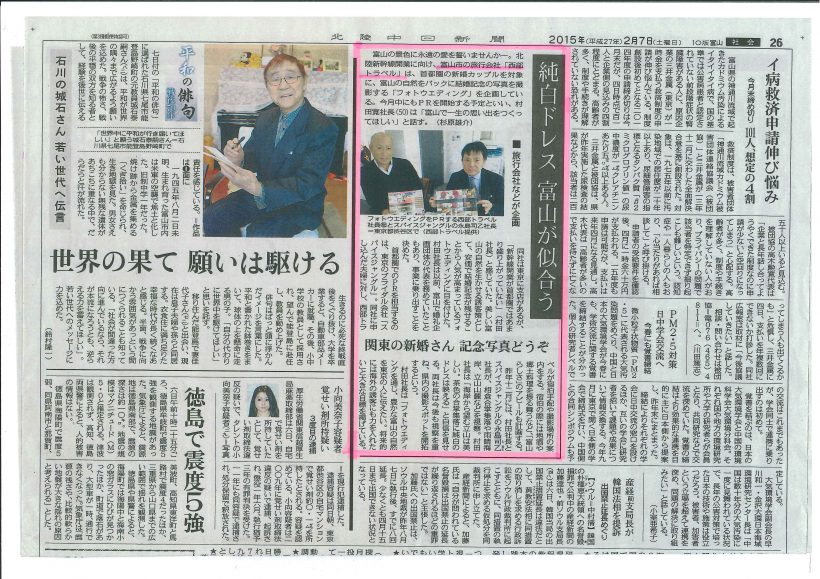北陸中日新聞 2015年2月7日 富山でフォトウェディング
