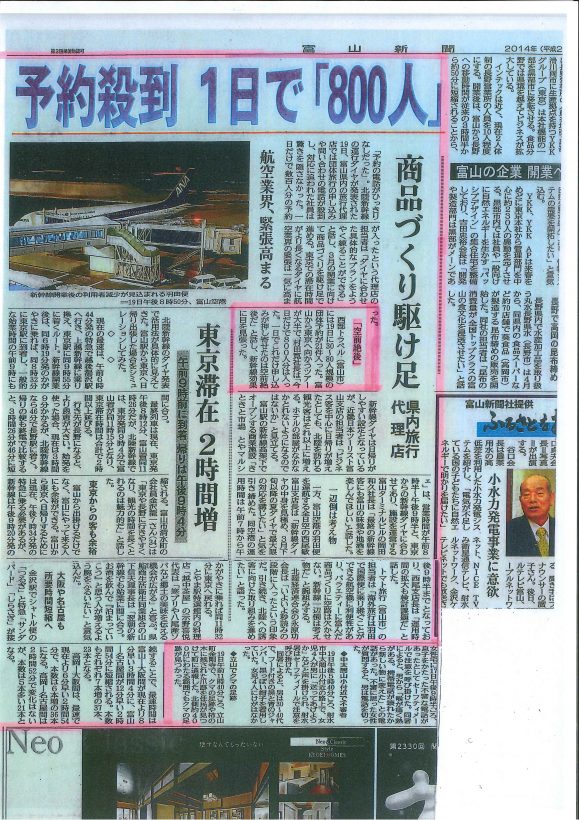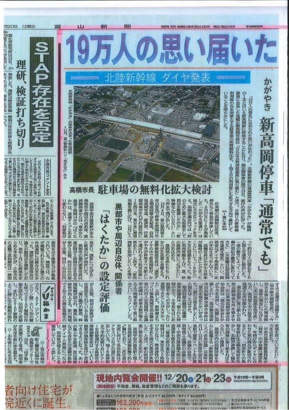 富山新聞 2014年12月20日 北陸新幹線ダイヤ発表