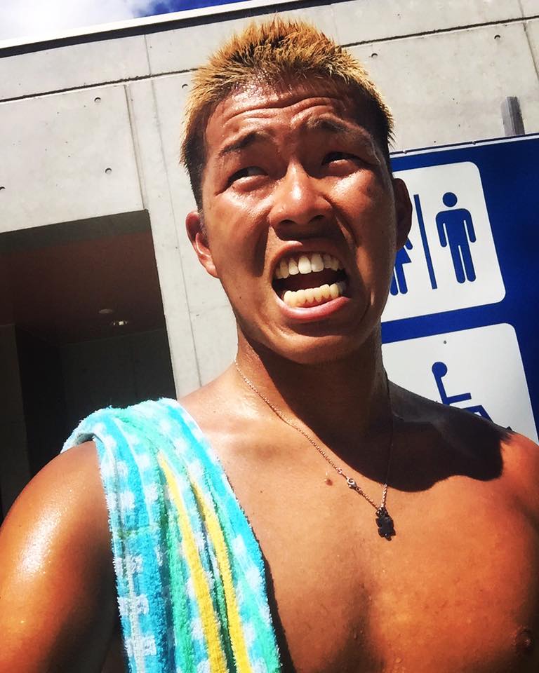 福島に向かう峠で気温37℃の為上裸です。