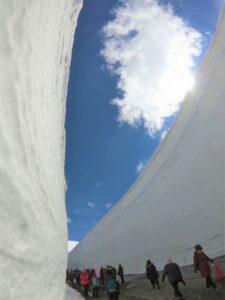 雪の大谷 最深部へ雪の高さ〇〇mへ