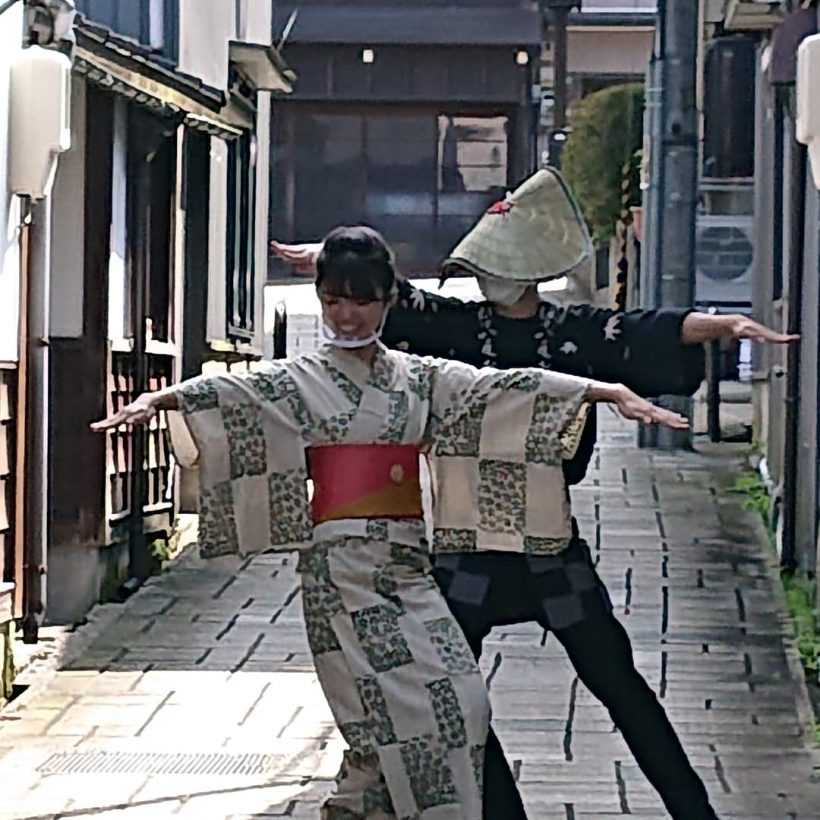 八尾の町並み散策~お店拝見~八尾観光会館の舞台上でのおわらの再現✨