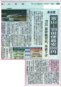 富山新聞 2014年12月25日 全日空 富山⇔羽田便