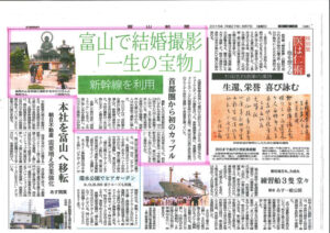 富山新聞 2014年12月30日 富山でロケーション撮影(フォトウェディング)